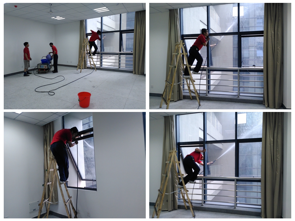◆ 服务内容:擦拭玻璃、全面牵尘、表面养护、清洗地面、厨厕除污消毒、装修痕迹清理、打蜡(另收费)